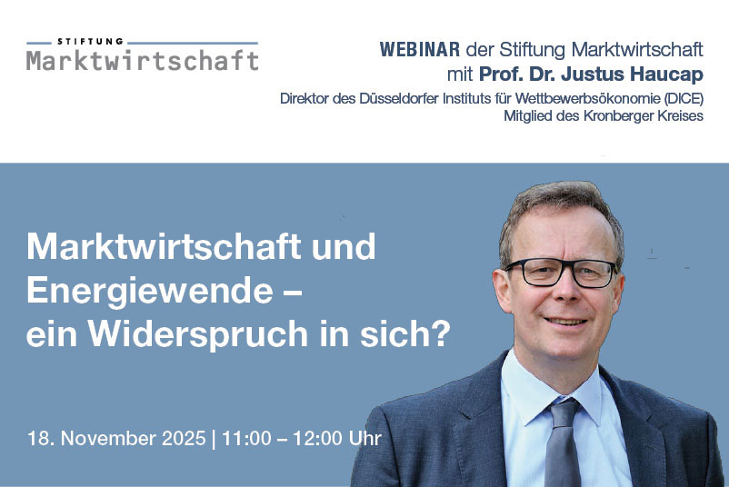 Während die Europäische Union beschlossen hat, bis 2050 klimaneutral zu werden, strebt Deutschland dies bereits bis spätestens 2045 an. Um diese ambitionierten Klimaziele zu erreichen, wird im Rahmen der Energiewende ein grundlegender Umbau des Energiesystems angestrebt. Verfolgt wird dabei vor allem ein planerischer Ansatz, in dem der Staat durch zahlreiche Regulierungen und Subventionen einzelner Sektoren und Technologien den Prozess detailliert zu lenken versucht. Vor diesem Hintergrund wird sich Professor Haucap in diesem Webinar kritisch mit der Frage auseinandersetzen, ob eine solche Strategie im Hinblick auf Umweltverträglichkeit, Wirtschaftlichkeit und Versorgungssicherheit zielführend ist. Im Anschluss an den Impulsvortrag wird die Diskussion für Fragen der Teilnehmer und einen direkten Austausch geöffnet.
